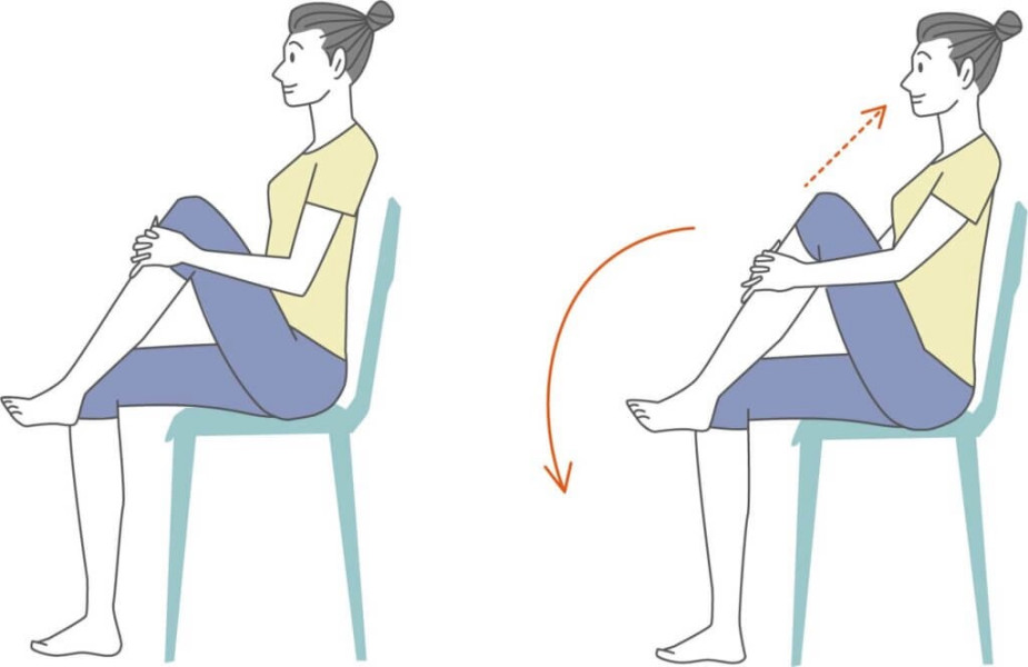 椅子に座った状態で片膝を後ろに引き、股関節の前を伸ばすストレッチが効果的。