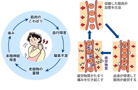 その結果、筋肉や関節の中に老廃物や炎症物質がたまり、痛みを感じやすくなるのです。