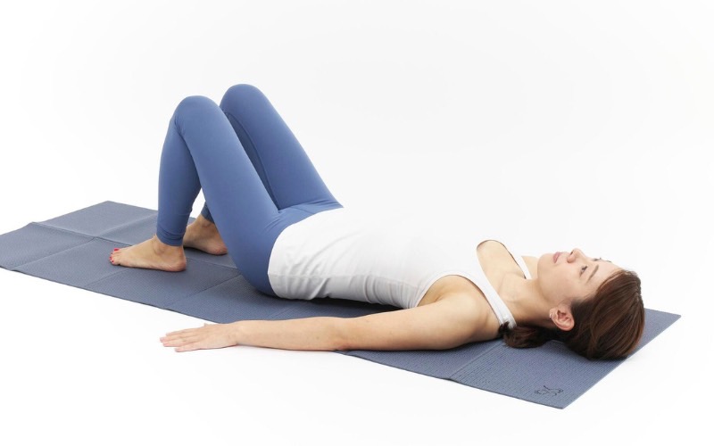② 膝を左右にゆっくり倒す(腰をねじるイメージ)
